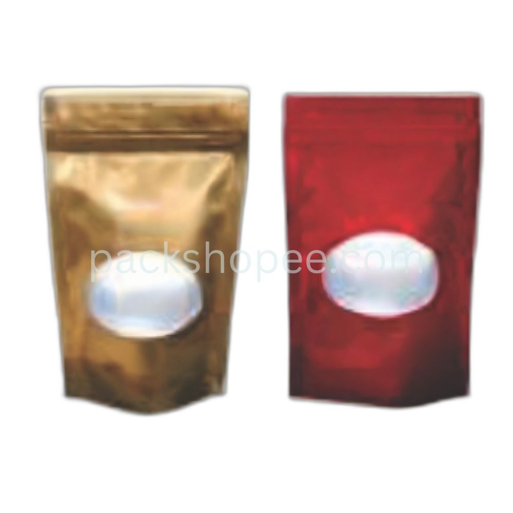 Our Colored Standup Pouches in glossy finish are available in a variety of eye-catching colors, designed to give your products a professional and attractive presentation. The sleek glossy finish provides a high-shine look. These pouches are available with both rectangular and oval window